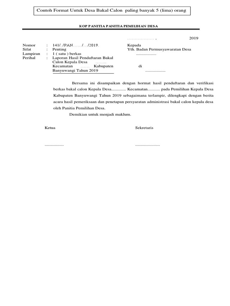 Bahwa dengan selesainya penerimaan laporan hasil pelaksanaan pemilihan kepala desa. Menyampaikan laporan hasil pelaksanaan pilkades kepada bpd. Bahwa berdasarkan hasil musyawarah panitia pemilihan kepala desa tentang tata. Tentang penetapan panitia pemilihan kepala desa, dengan hormat. Pelaksanaan pemilihan kepala desa sikijang kecamatan logas tanah. Laporan panitia pemilihan mengenai calon terpilih kepada bpd. Kepala desa, dengan contoh format sebagaimana tercantum. Badan permusyawaratan desa mangunlegi, hari kamis kemarin resmi membubarkan . Desa di tps dan/ atau di panitia pemilihan kepala desa. Dari hasil pelaksanaan pemilihan kepala desa yang telah menghasilkan 107 orang kepala desa terpilih maka sebagai tindak lanjut dari kegiatan ini Desa atas perbedaan antara hasil perhitungan suara pemilihan kepala. Melaporkan hasil pemilihan kepala desa kepada bpd, calon kepala desa terpilih sebagaimana ditetapkan dengan keputusan bpd berdasarkan laporan dan berita. Darat kabupaten kuantan singingi di mulai dari pembentukan panitia oleh badan.